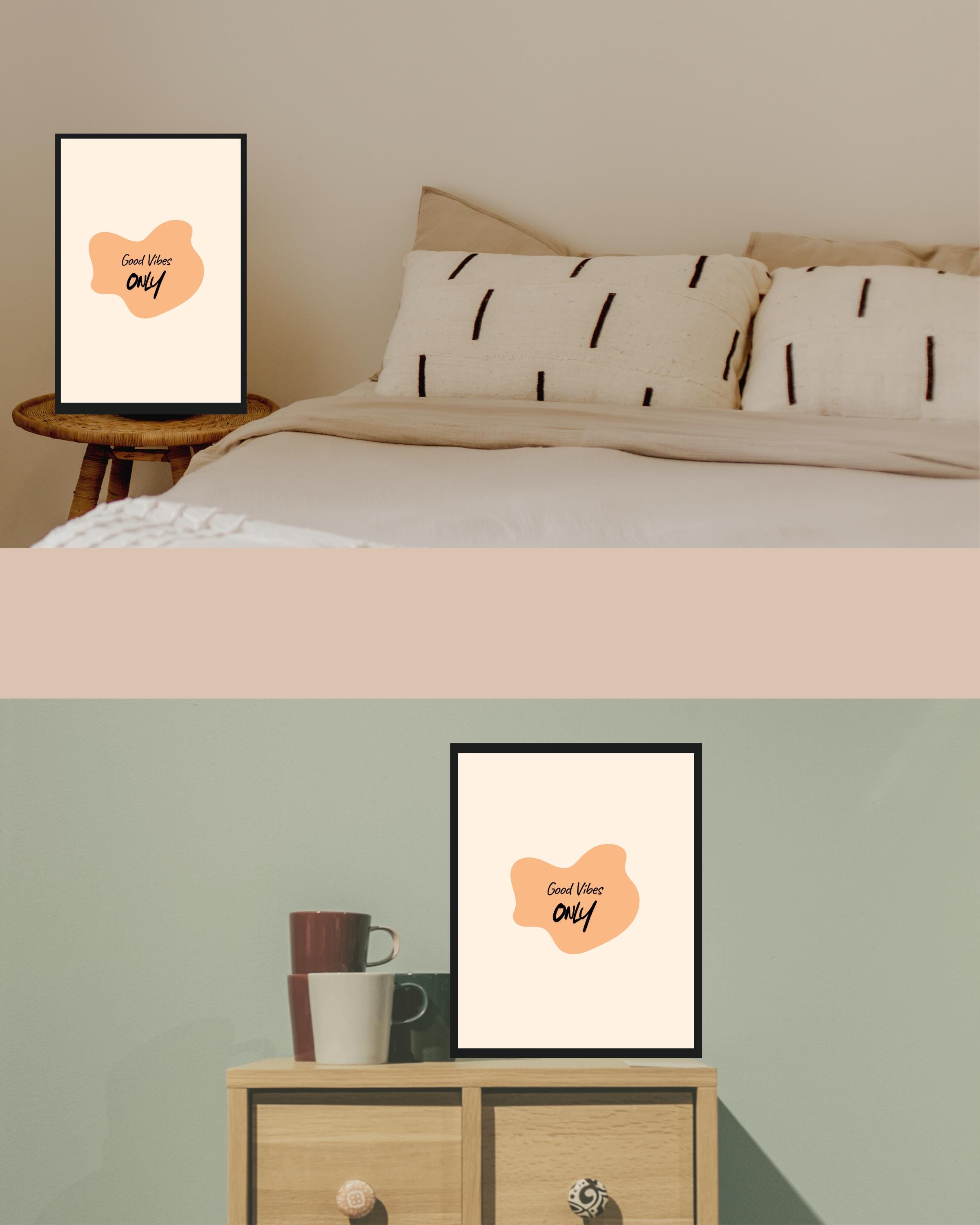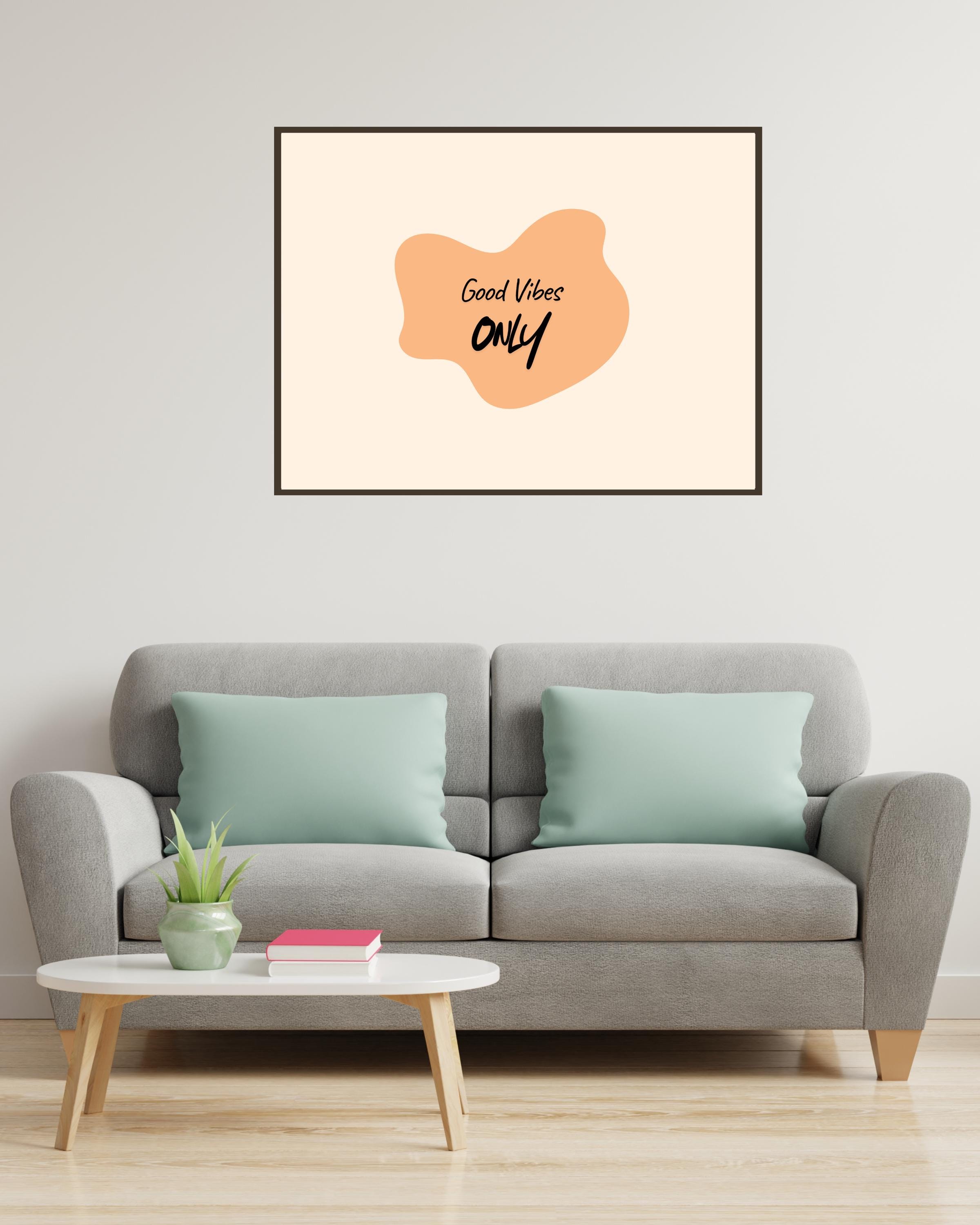Bring positive energy into your home or workspace with this stylish Good Vibes Only wall art. Designed with a sleek, modern minimalist aesthetic, this digital print features a soft peach abstract shape with the uplifting phrase "Good Vibes Only" in a trendy script font. Perfect for adding warmth and a cheerful vibe to any room, this printable wall decor seamlessly blends with contemporary, boho, Scandinavian, and modern interiors.