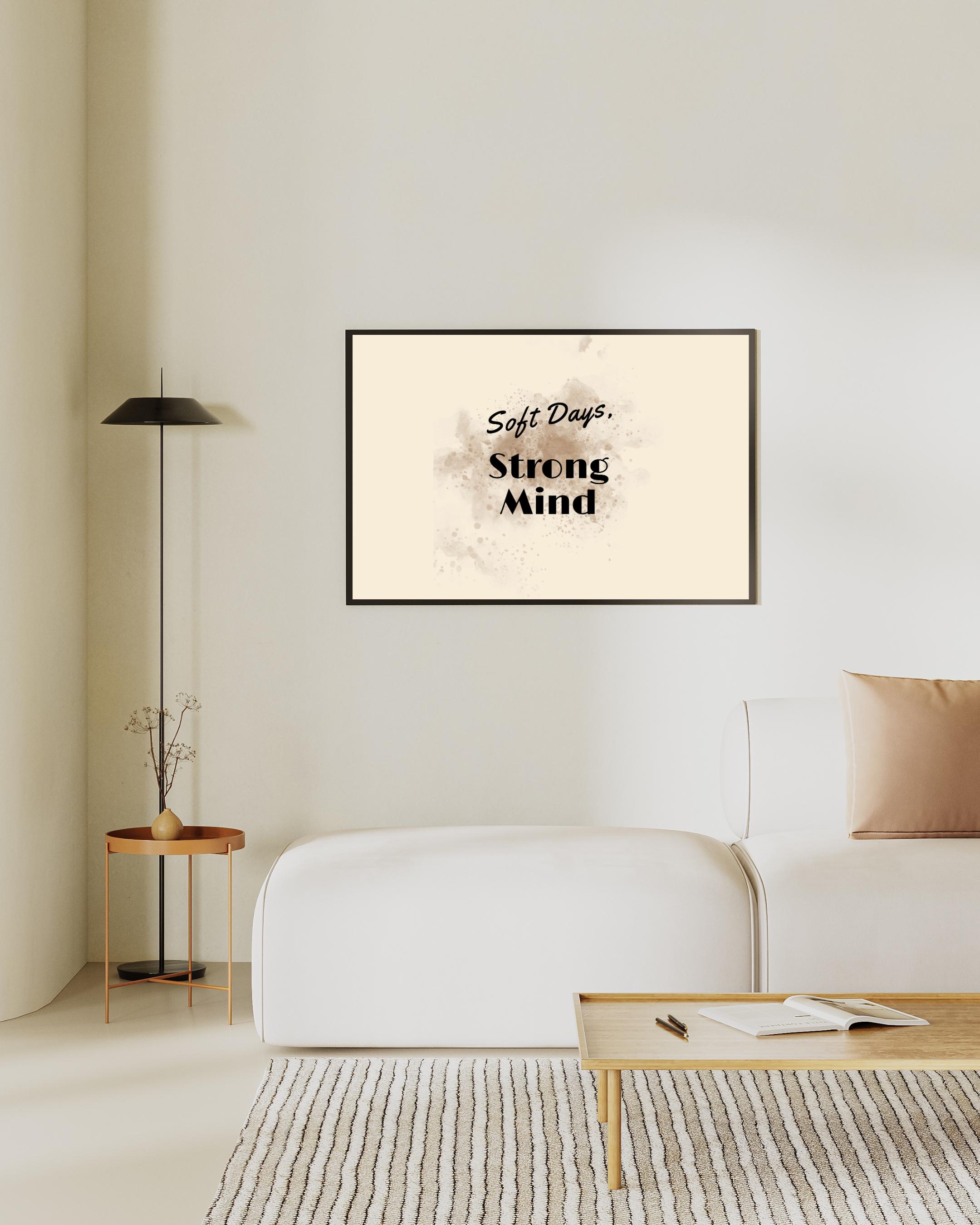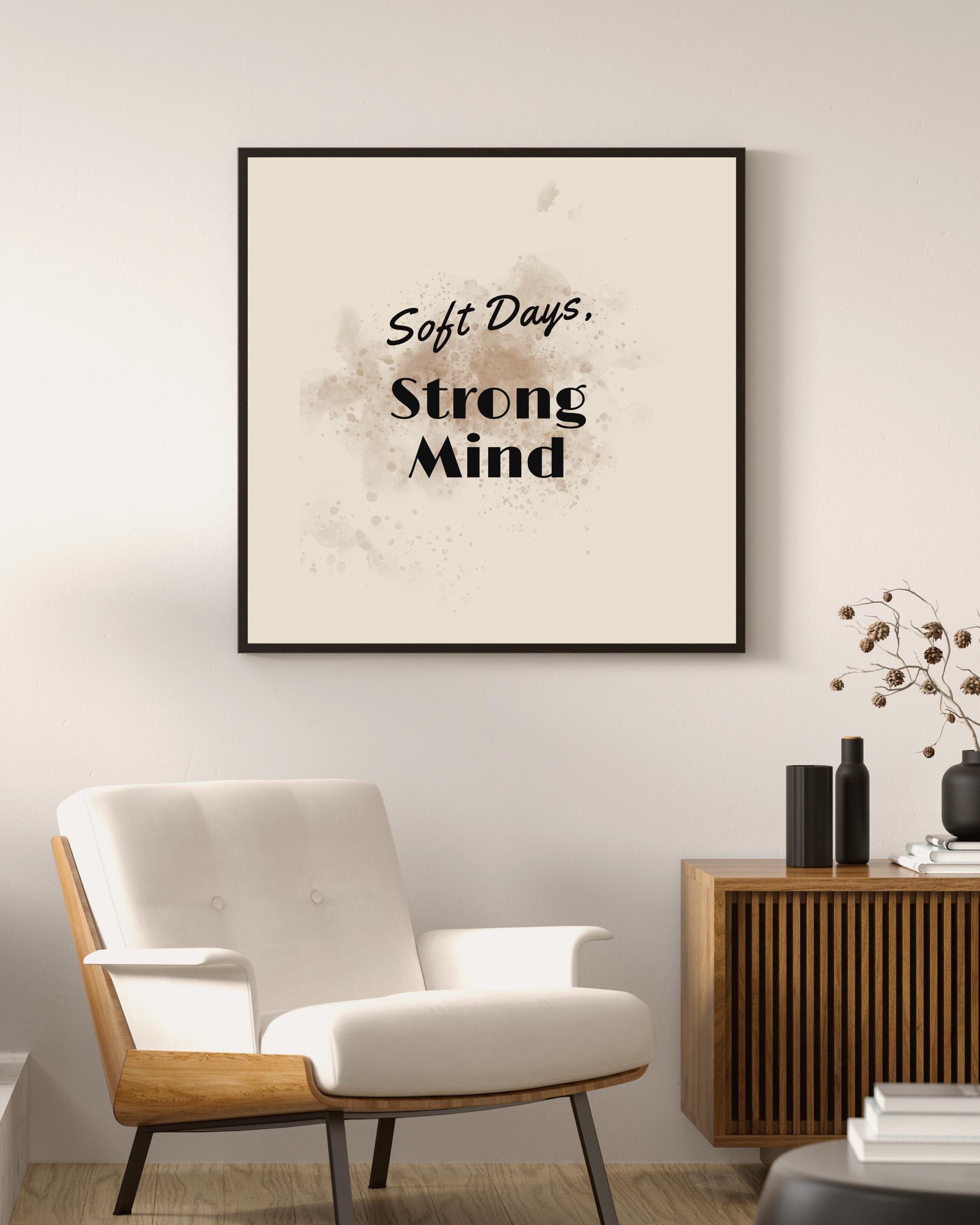 Elevate your space with the Soft Days Strong Mind wall art, a minimalist digital print designed to inspire calmness and inner strength. Perfect for bedrooms, home offices, yoga rooms, or meditation spaces, this art piece serves as a daily reminder to embrace gentle days while maintaining a resilient mind. Its clean, modern design seamlessly complements boho, modern, and wellness-inspired decor, adding a touch of serenity and motivation to any room.