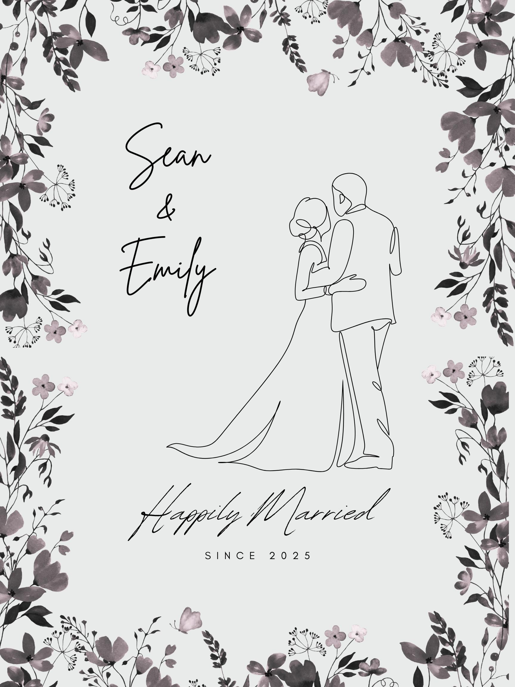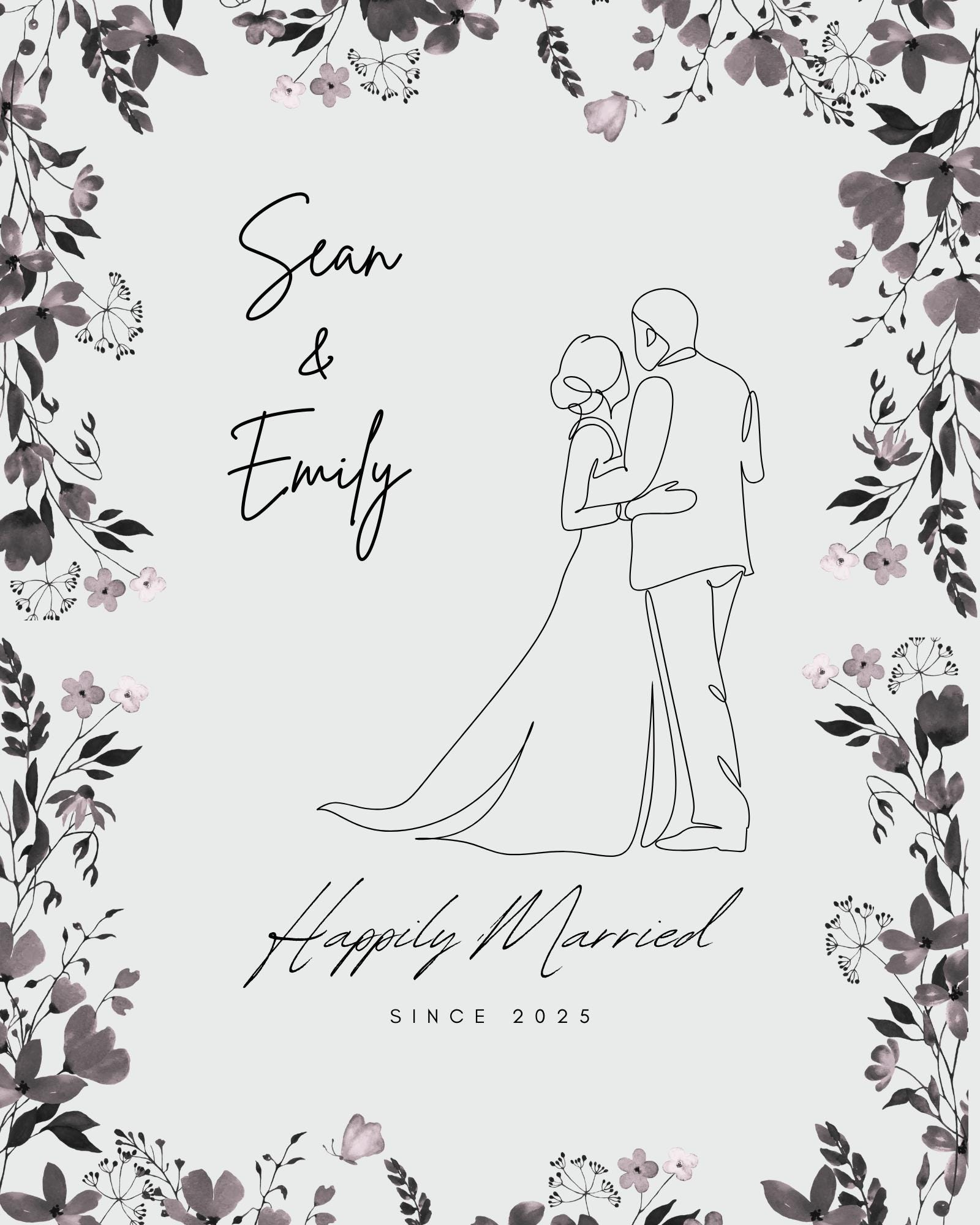 Celebrate your love story with this stunning Personalized Wall Art Template, perfect for weddings, anniversaries, or heartfelt home decor. This editable digital download allows you to customize the design with names, dates, quotes, or meaningful text to create a truly unique piece that reflects your style and journey together. The minimalist line art featuring a happy couple beautifully complements the delicate floral border, making it an elegant addition to any space.