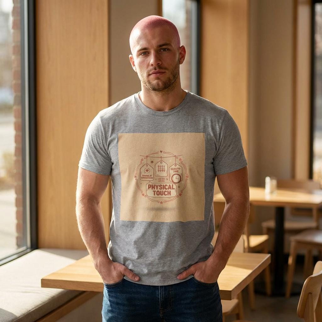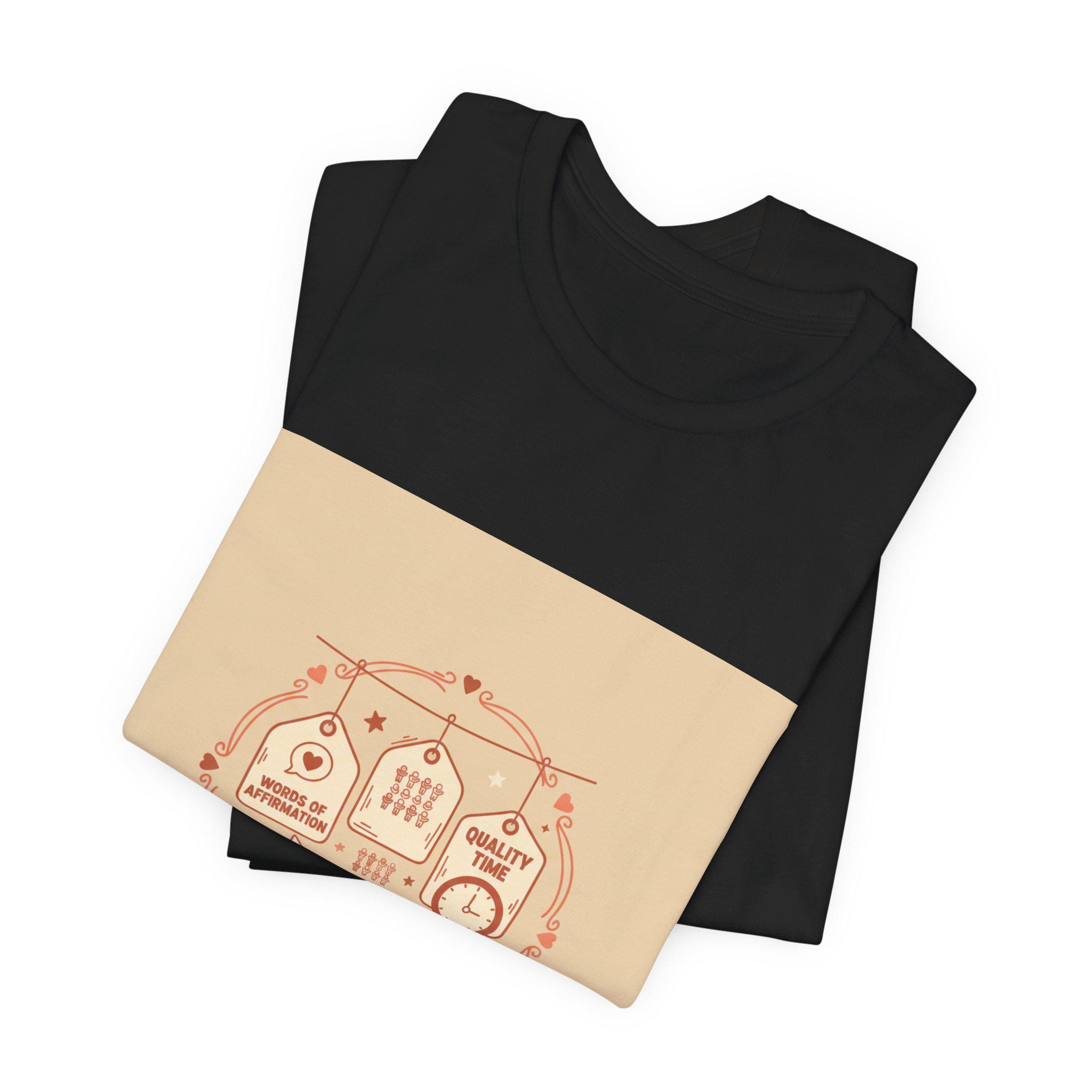 A warm, witty tee that turns the ‘love languages’ idea into a cozy meme: clean, legible type and tiny icons list familiar comforts with a single-accent, neutral palette. The front artwork reads like a cheeky identity badge—soft beige background, friendly serif/rounded type, and small illustrative icons that read at a glance. It leans into relationship humor and quiet affection, pairing well with the Love Languages, But Funny trend vocabulary like “love language meme,” “acts of snacks,” and “quiet love.”