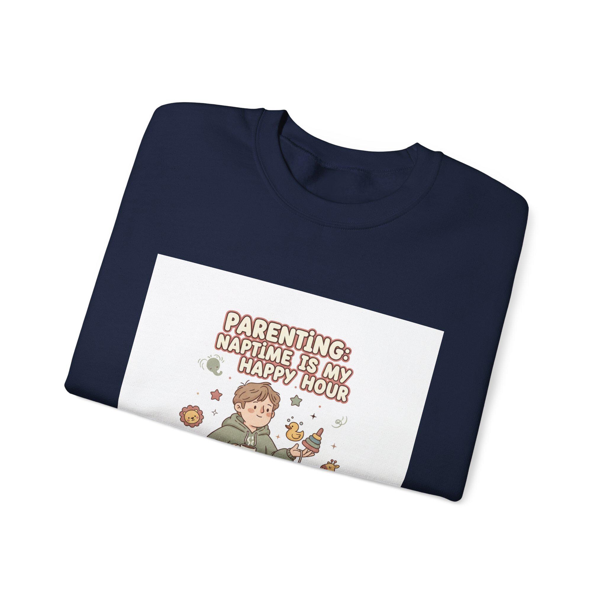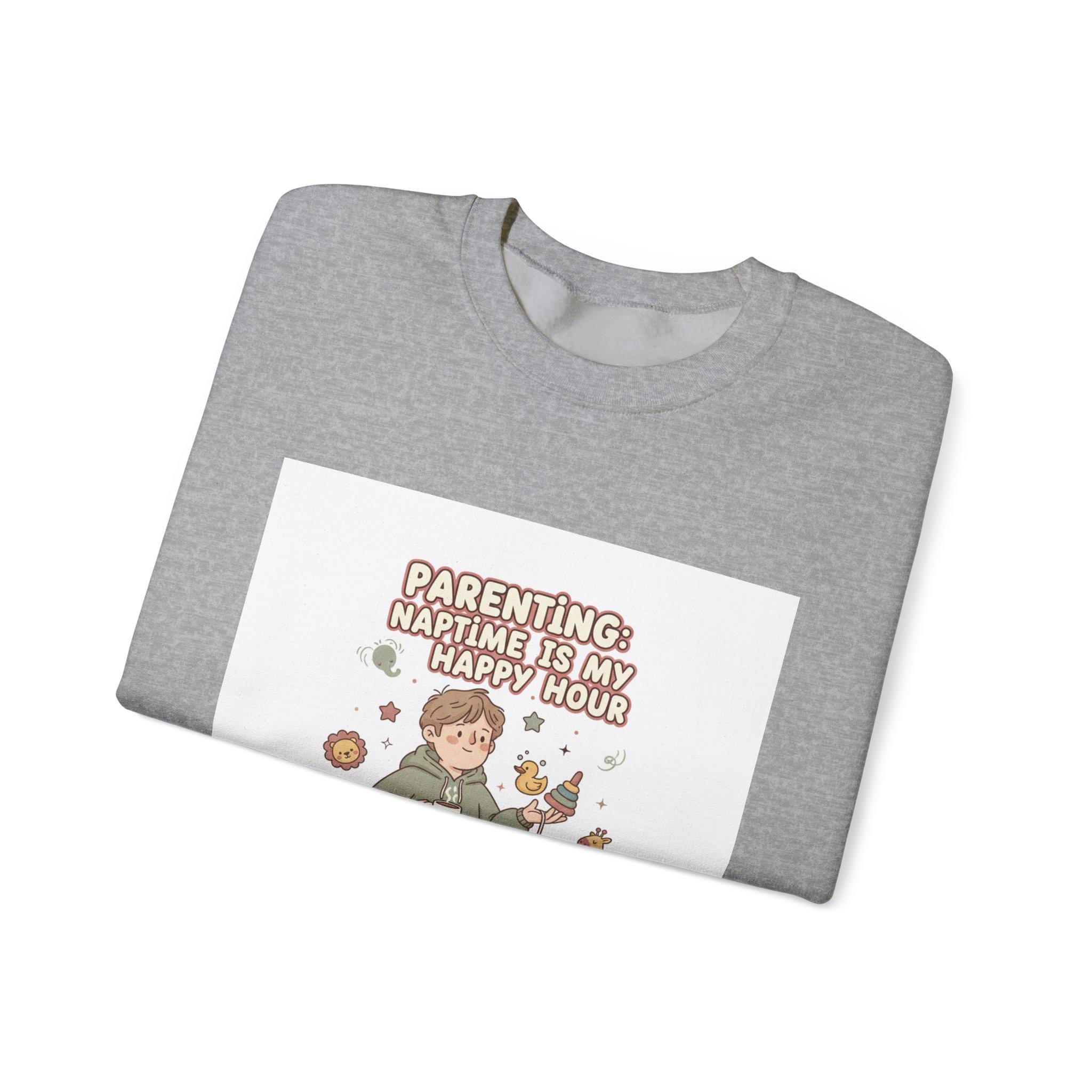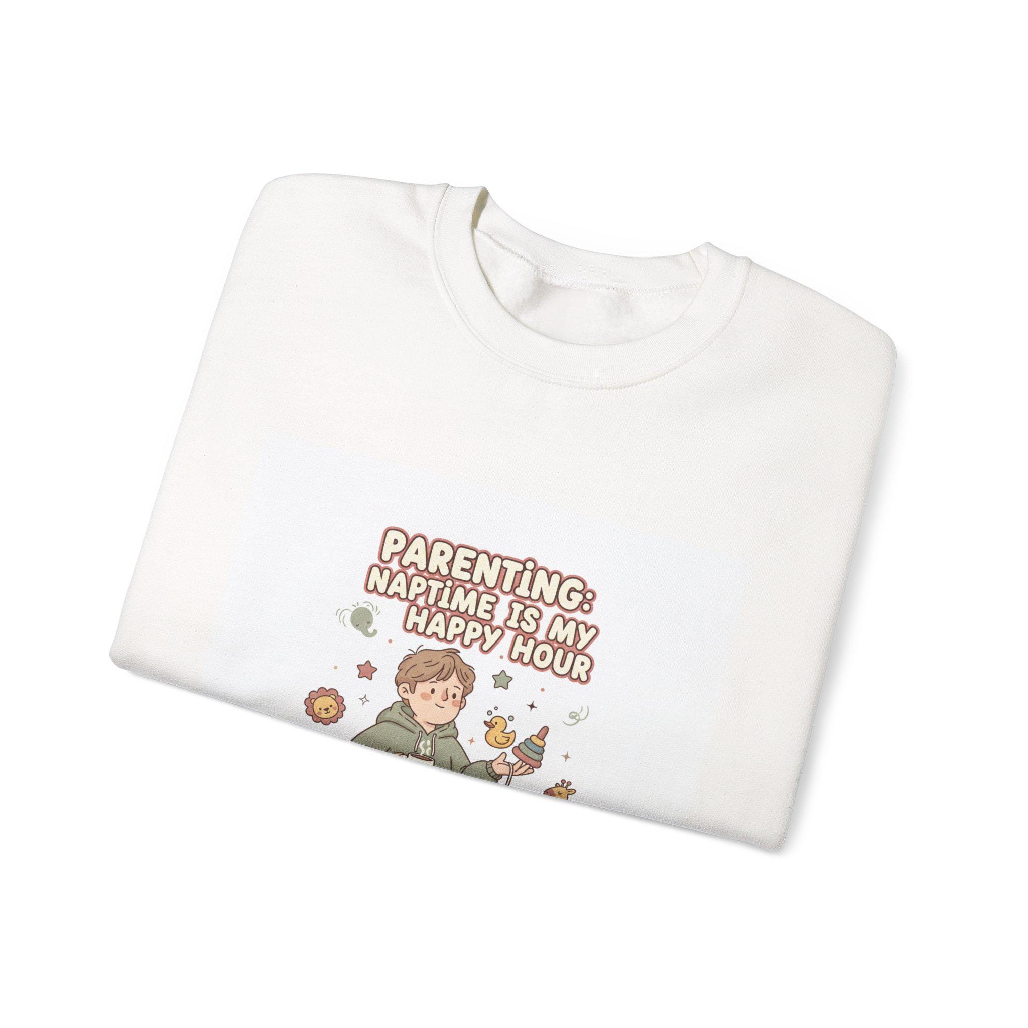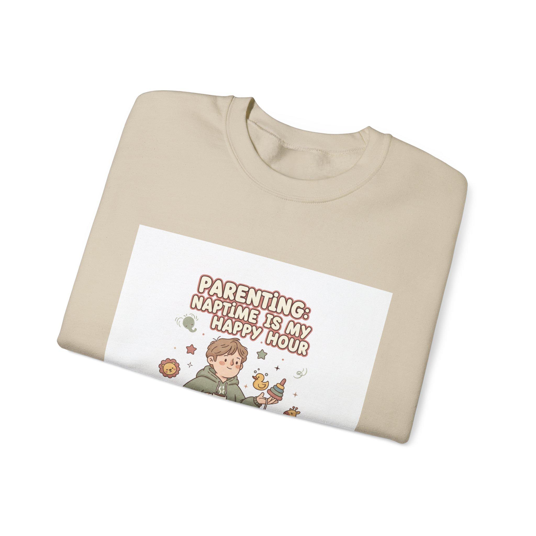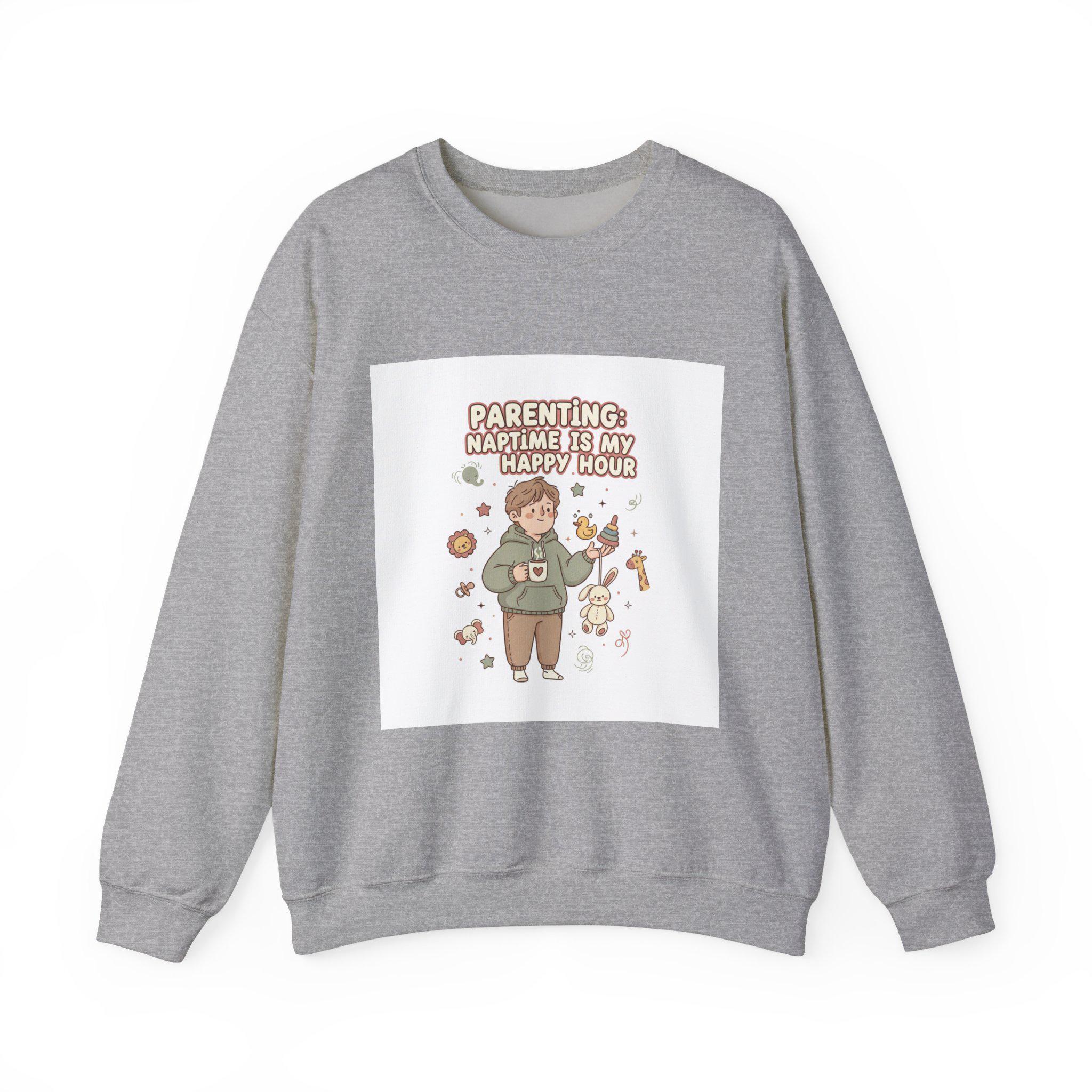 Soft-neutral crewneck sweatshirt featuring a wry, candid parenting illustration and short punchline that leans into the ‘Tired Parent Realism’ mood. The design shows an exhausted caregiver holding coffee with playful, muted-accent doodles (toys, snack crumbs, pacifier) and a single accent color to keep the look wearable and low-key. Comfortable midweight fleece and classic crew styling make it an easy layer for everyday wear while the embroidered or printed chest placement keeps the graphic approachable and casual.