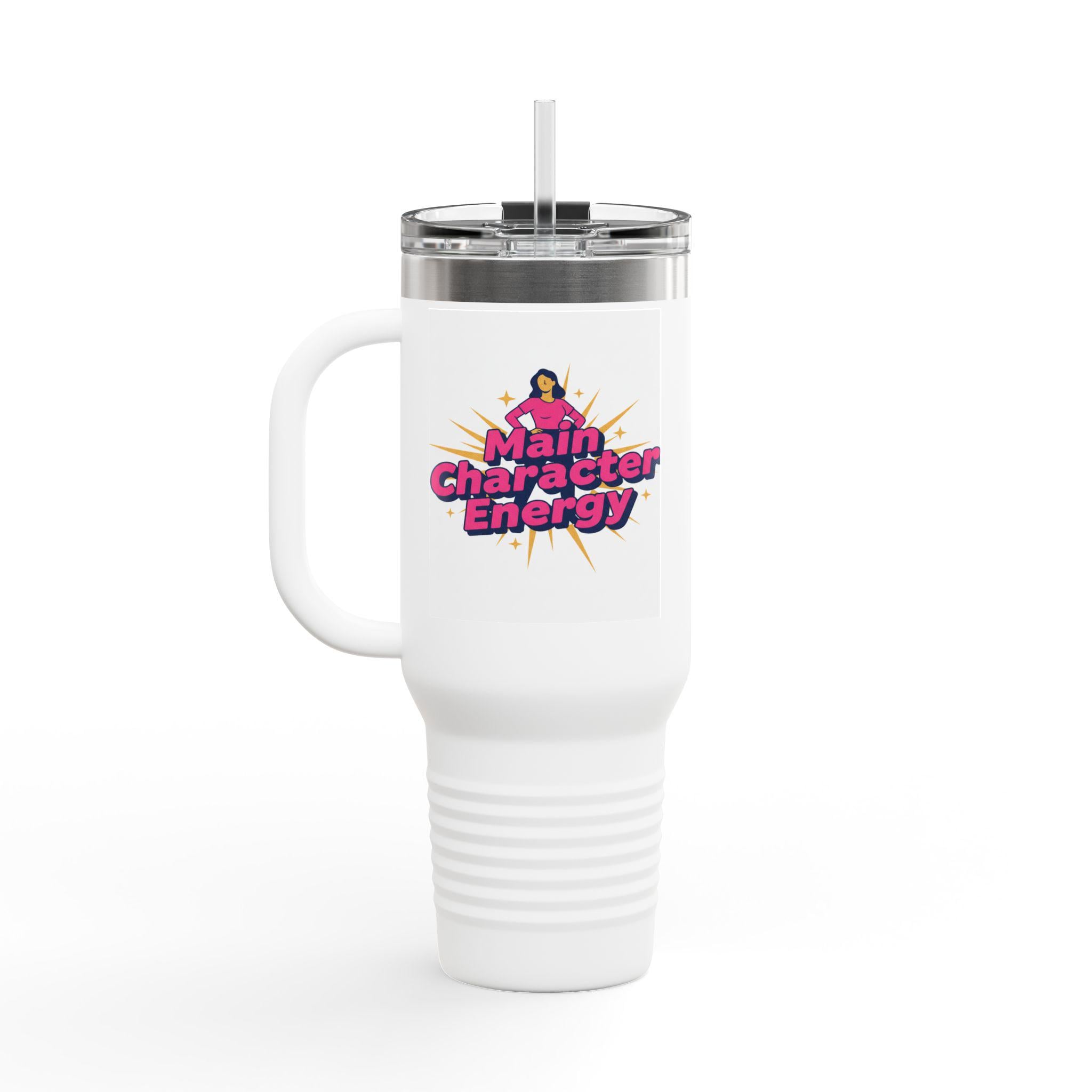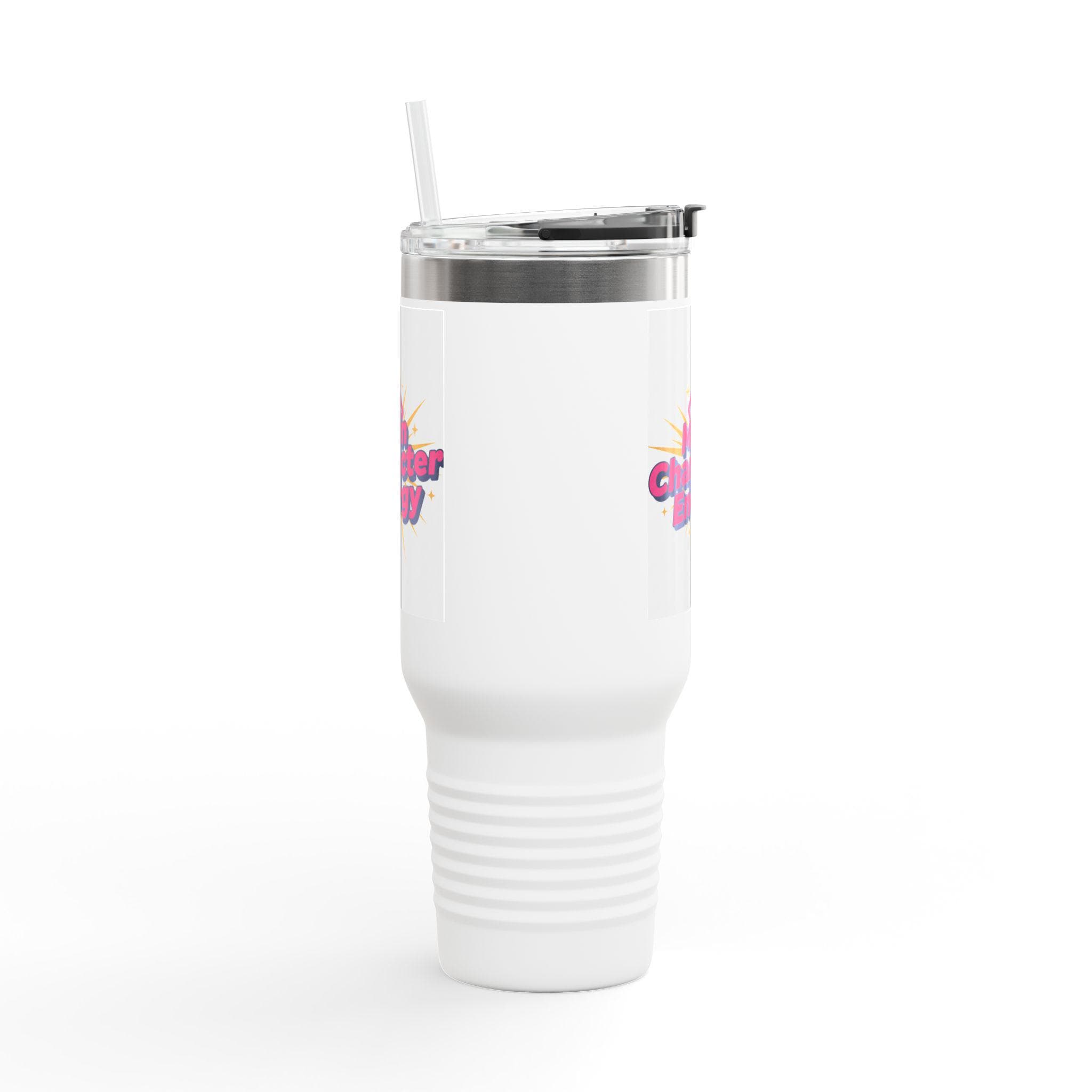 This 40oz insulated travel mug keeps your drink at the right temperature while you move through a busy day. Its double-wall stainless steel body holds long coffee runs, iced brews, or herbal tea without sweating or losing heat. The ergonomic handle and large capacity make it easy to grab on the go — whether you’re commuting, road-tripping, or settling in at a desk. The secure, push-on leak-proof lid with straw locks in liquids for splash-free transport. A durable powder coat finish carries vibrant UV-DTF artwork that resists fading and gives each tumbler a bold, personal look. Lightweight enough to tote, rugged enough for outdoors, and BPA-free for everyday use.