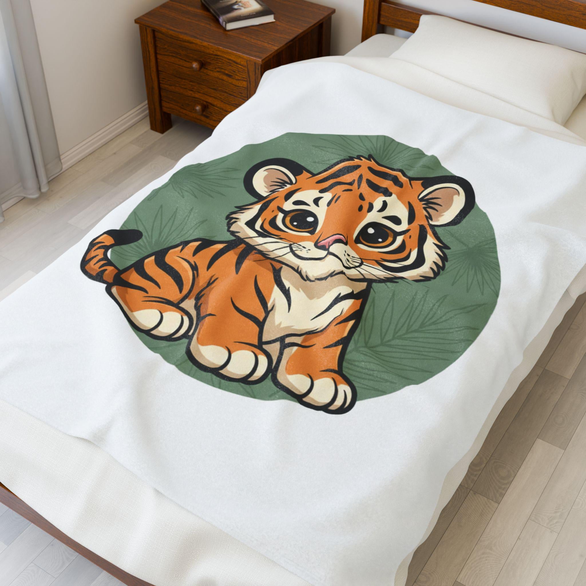 Wrap yourself in a soft Velveteen Blanket, snuggly moment with this velveteen plush blanket featuring an adorable baby tiger illustration. The short, velvety surface feels warm against skin while vibrant dye-sublimation printing keeps the tiger’s rich oranges and delicate linework crisp and lively. It’s a quiet companion for slow mornings, Storytime on the couch, or curling up with a good book under lamplight. Lightweight but cozy, the blanket layers easily over a favorite chair or draped across a child’s bed to add a playful, nature-inspired touch to any room.