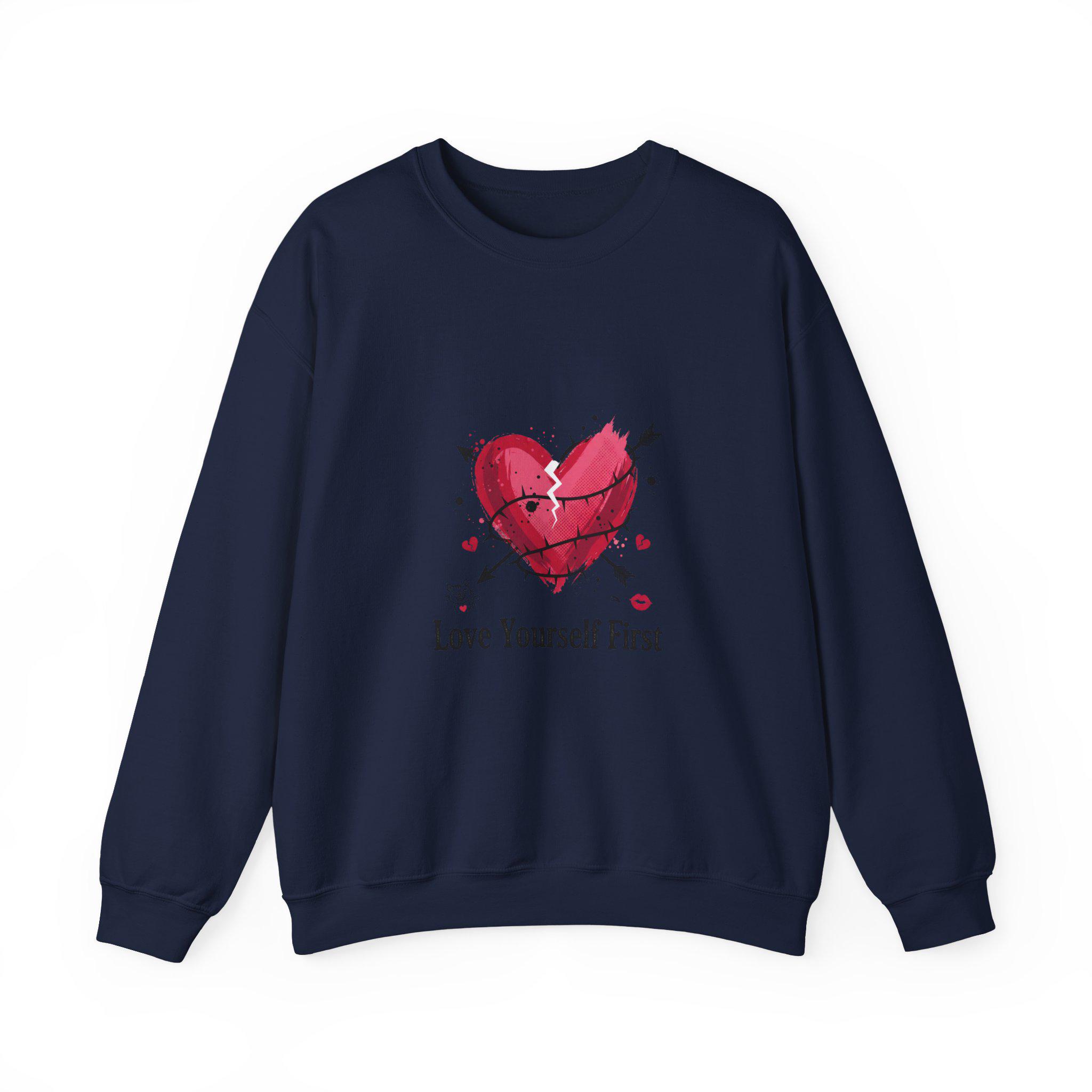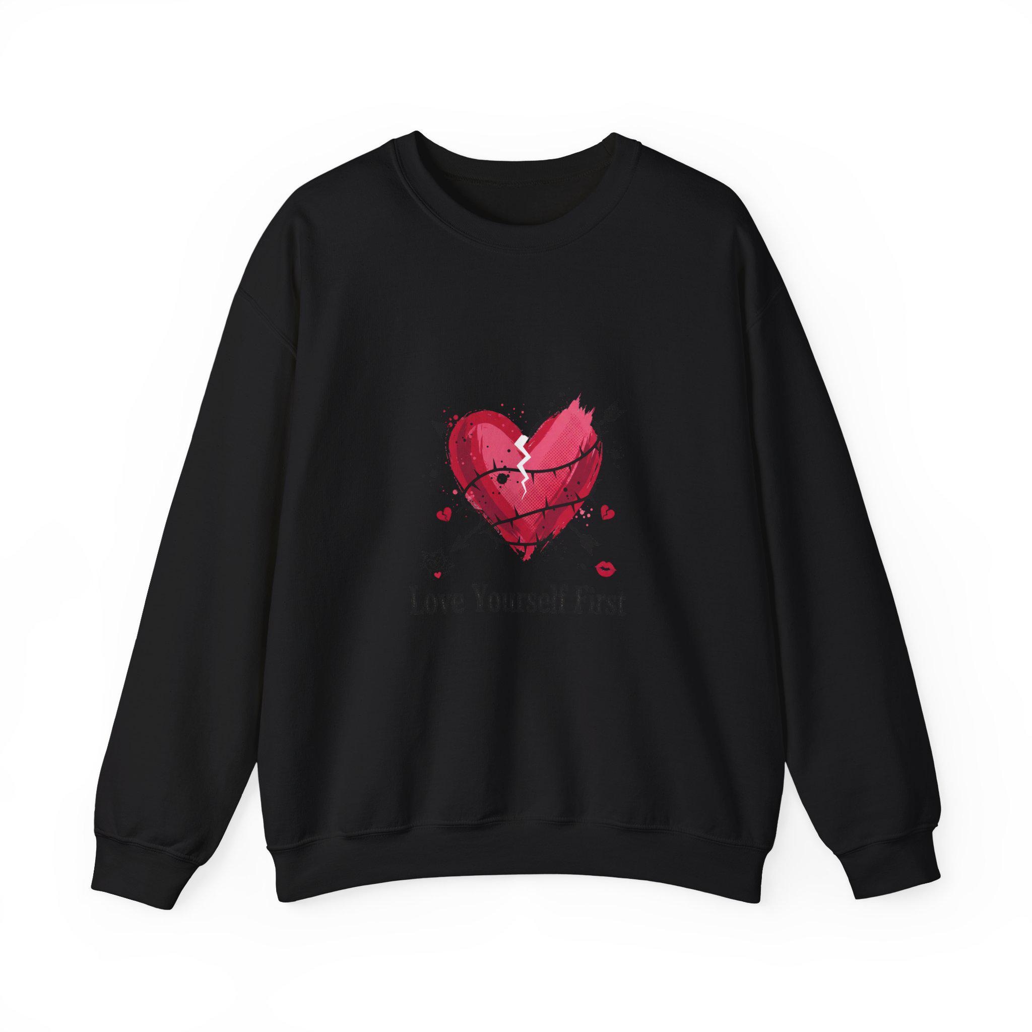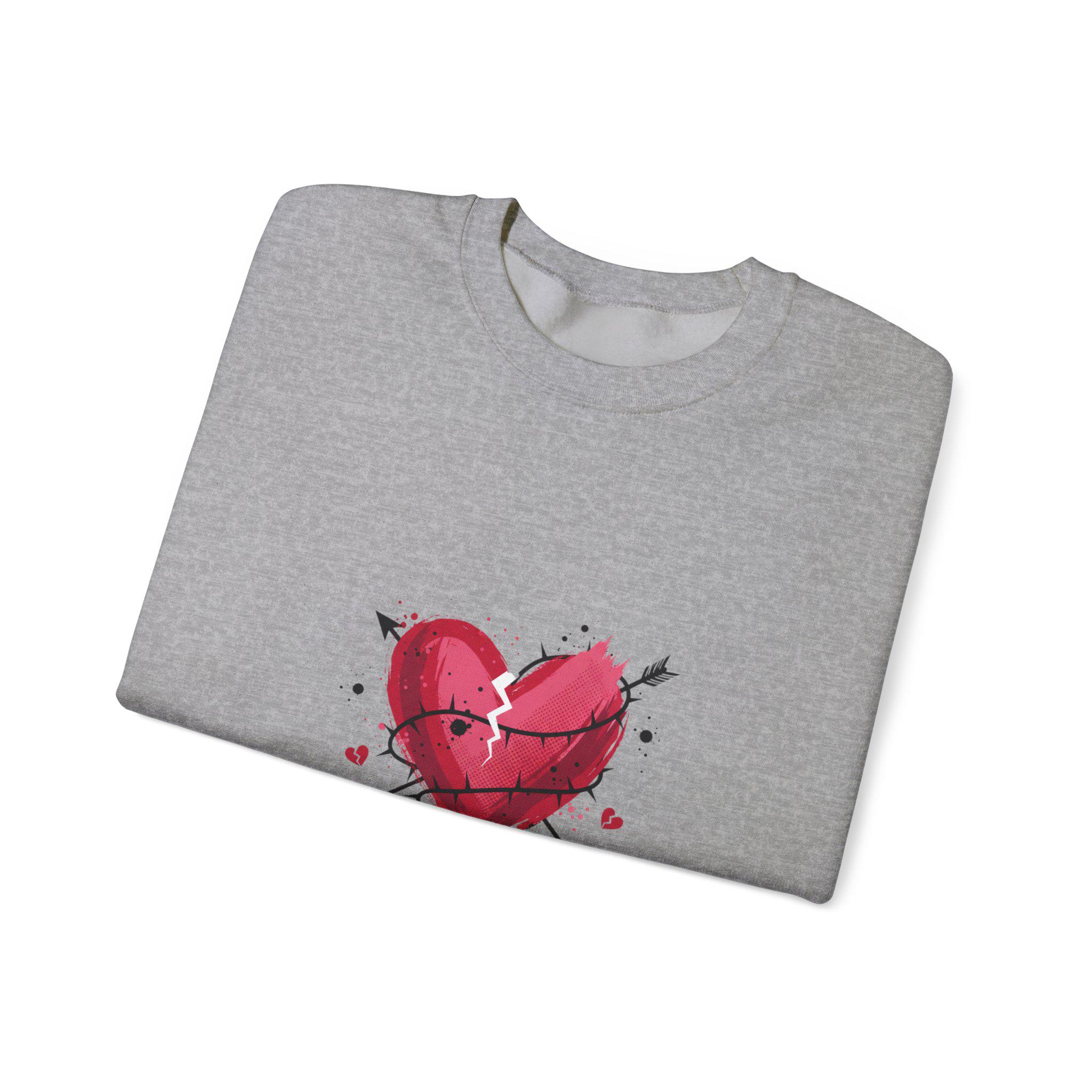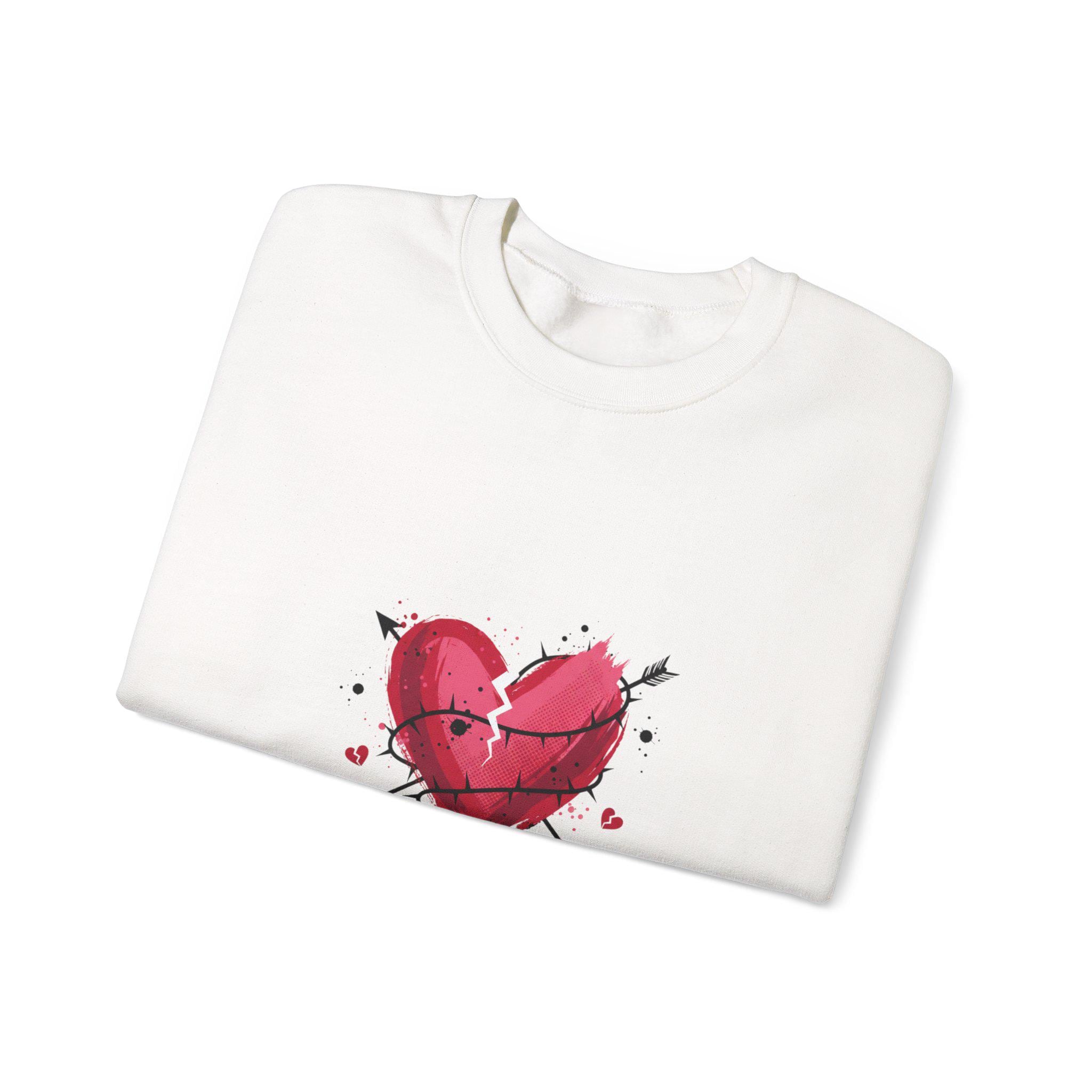 A soft-contrast crewneck that flips sweet-heart imagery into a self-minded statement. A watercolor-style, pierced heart sits at center chest with tiny scattered hearts and a short, boundary-focused line of text beneath—combining blush reds with a neutral sweatshirt ground for that ‘sweet but guarded’ Hearts‑with‑a‑Twist mood. The aesthetic reads like tongue-in-cheek romance: playful, slightly mischievous, and designed to start conversations without leaning on cliches. Worn as an everyday layer, it suits readers of anti‑Valentine humor, punk-leaning wardrobes, or anyone who likes irony with warmth.
