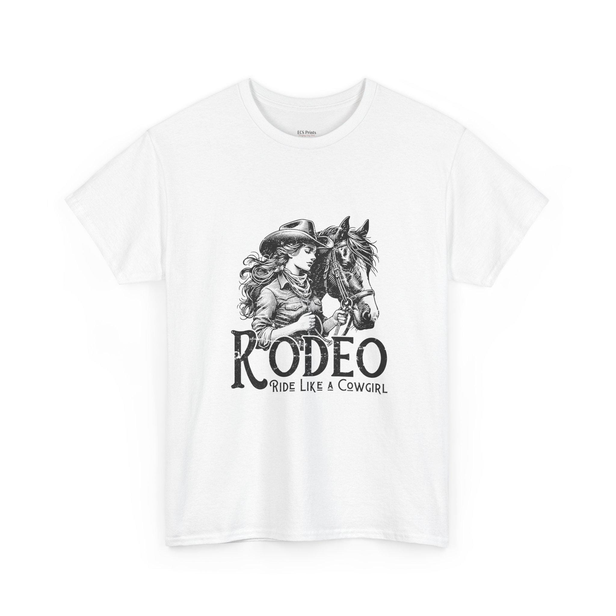 This soft, breathable tee carries a quiet, western spirit — hand-drawn cowgirl portraits and vintage rodeo lettering settle across the chest and back like a weathered poster found at a county fair. It feels lived-in from the first wear: roomy enough for long days at the barn, light enough for dusty summer afternoons, and subtle enough to layer under a flannel when the sun sets. Wear it while saddling up, cheering at the arena, or running errands with a coffee in hand. The art nods to tradition without shouting — a piece for people who love horses, horsemanship, and that steady, grounded way of life.